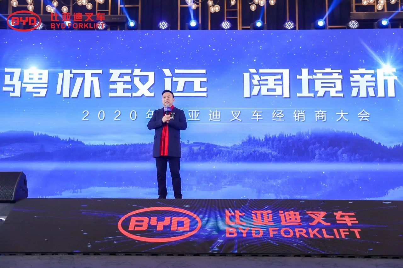 1月6日,以“騁懷致遠(yuǎn),闊境新程”為主題的2020年比亞迪叉車經(jīng)銷商大會在陜西西安隆重召開。比亞迪叉車總經(jīng)理畢國忠先生與事業(yè)部各高層領(lǐng)導(dǎo),以及全國各地的杰出經(jīng)銷商代表、行業(yè)協(xié)會、媒體朋友們歡聚一堂,共同分享喜悅、見證榮耀,展望新能源叉車的未來發(fā)展宏圖。
