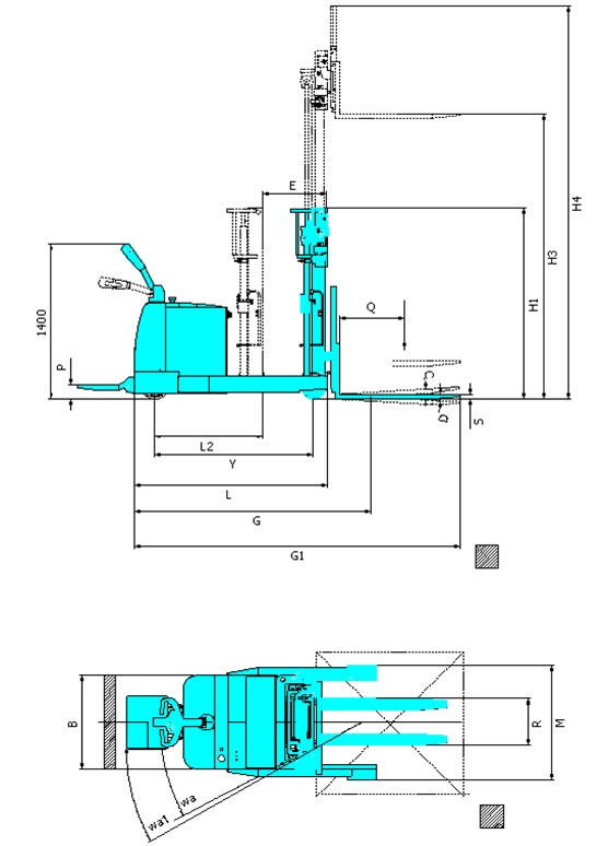 Overall length (mast no reach)(整車長度)(門架沒前移含貨叉) | G | mm | 2020 | 2220 | 2320 | |